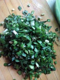 5.将槐花、韭菜、肉丁放入干净盆中,加入油、盐味极鲜酱油、鸡精拌匀成馅。