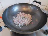 6.锅留底油,小火将洋葱粒,蒜末煸炒至洋葱粒透亮。