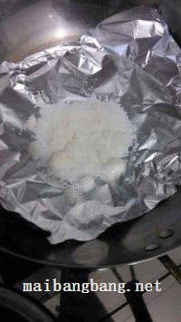 5.炒锅中铺上一张锡纸,放两勺白糖。