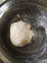 6.将10个小面团分别擀成薄皮(擀皮期间把五花肉加胡椒粉盐巴料酒腌制)