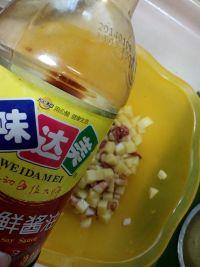 1.酵母粉用温水调开加入到面粉中揉成面团,放温暖处发酵。(猪肉切丁加入酱油腌一会。忘拍图了)