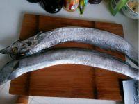 4.油先把裹了面粉的带鱼炸熟,捞出备用。油先爆香姜蒜、小米辣和郫县豆瓣炒出红油,加带鱼一起翻炒,加适量水开始焖,等水焖干加少许盐即可,最后撒一下香葱增香