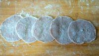 2.面团分成若干个小剂子,擀成饺子皮,如图摆放好。