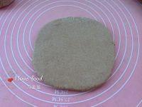 11.取一个面剂子按扁,用擀面杖擀成厚10厘米的圆形。