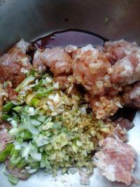 1.肉馅先用葱姜蒜、生抽和料酒腌半小时
