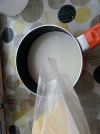 1.牛奶倒入锅中。