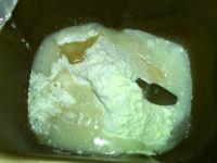 2.将除黄油外的面团料倒入面包机,