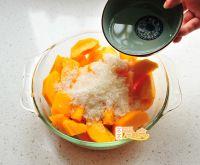 3、黄桃要选择完好的,切开的黄桃变色的就要挑出来。