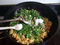4.鸡蛋磕入大碗,加些料酒打匀,放入油锅炒熟铲碎,盛出。