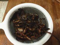 3.洋葱丝油炸至金黄色,炸好的洋葱丝控油晾凉。