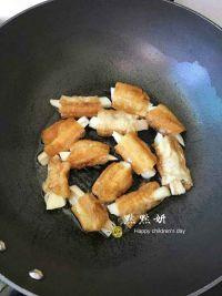 10.要不停翻素排骨,煎到你看到莲藕有点微黄色即可,看,油还是那么多,素排骨盛出,油倒掉