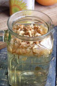6.把切好的西柚小块投在里面,喝时用小匙挤压西柚块,合其香味果汁与茉莉蜂蜜茶充分溶合,即可饮用