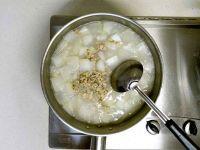 5.放入切好的冬瓜炒一会,把煮哈喇的水倒入锅里,视水的多少再加适量开水至冬瓜煮熟。