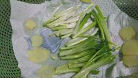 5.醒面的时间制作葱油。葱切段,姜切片,吸干水分。