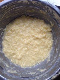 3.加入蛋液搅拌均匀,一点点加较好,放多了比较难搅拌一起。