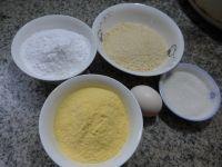 1.食材:糯米粉100克、玉米粉100克、椰蓉50克、鸡蛋1只、白糖30克